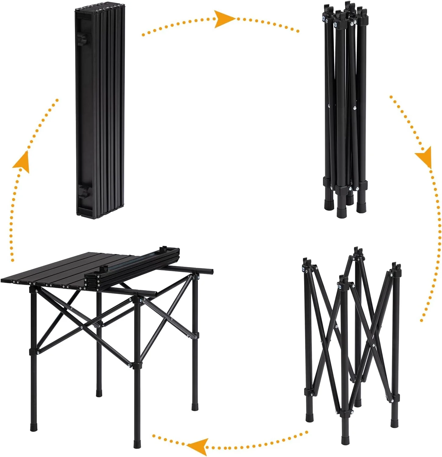 - 【Quick Assembly】: Installing the collapsible garden table is quick and easy, no installation tools are required. Snap closure opens and folds this square camping table in seconds.